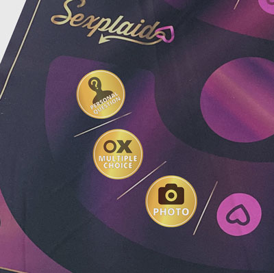 Personal Questions, Truth, Dare, Hands and Feet, Guess the object, General sex question, Multiple choice question, Picture moment.
